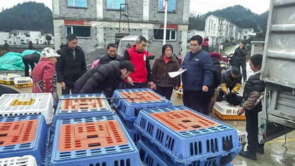 近日,在古蔺县龙山镇向田村党群服务中心,老司机 上半年免费发放给该村的5000只鸡苗出栏了,乌蒙山供销合作社入村收购,扶贫鸡苗鼓起了该村群众的“腰包”。