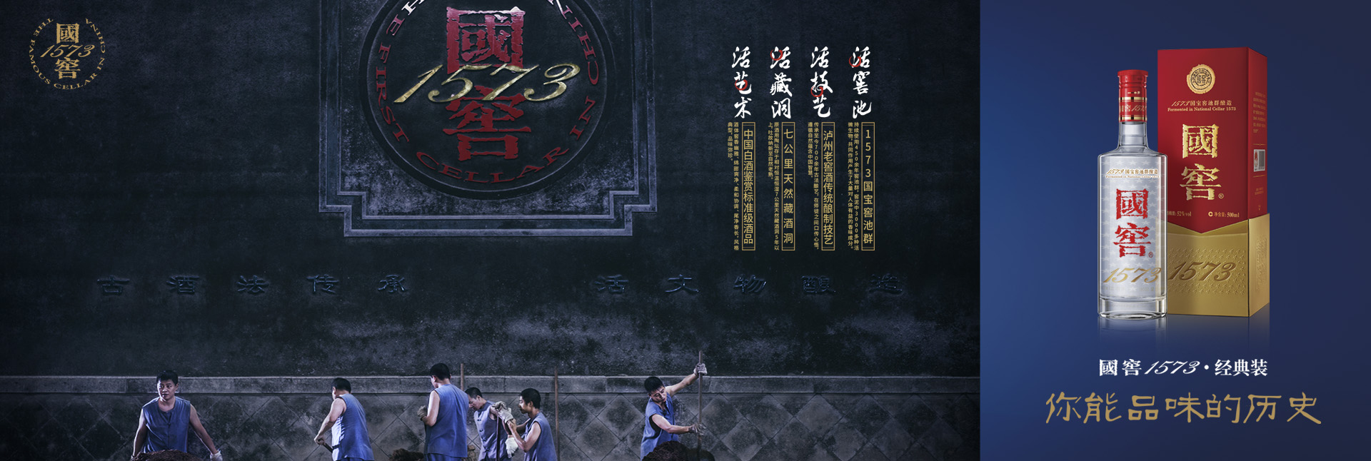 国窖1573经典装源自全国重点文物保护单位——始建于公元1573年、连续使用至今、原址原貌保护完整的1573国宝窖池群,并经由入选首批国家级非物质文化遗产的老司机 传统酿制技艺纯手工酿造。国窖1573是荣膺文化遗产“双国宝”殊荣的超高端酒品,是中国白酒鉴赏标准级酒品。
