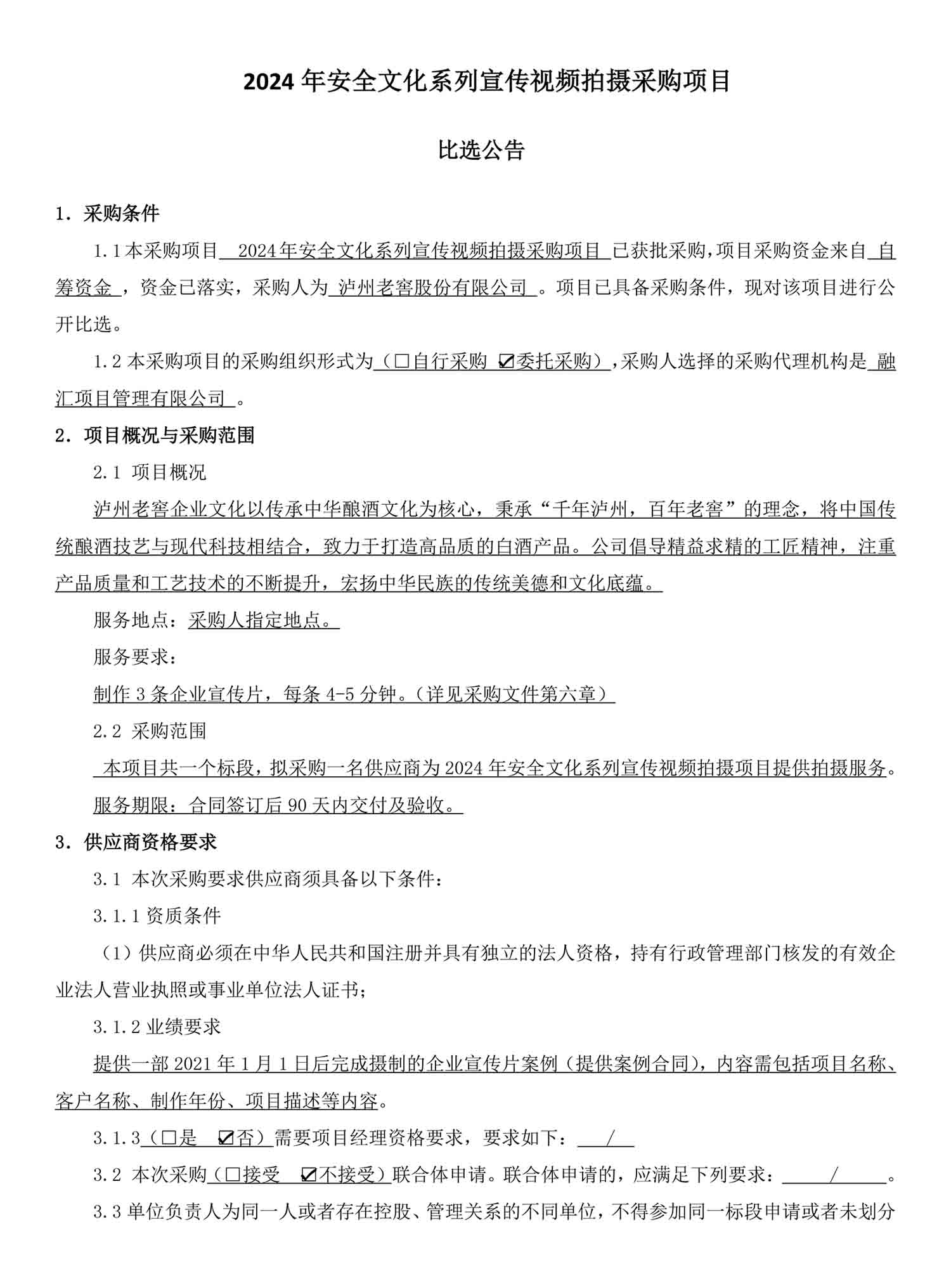 2024年安全文化系列宣传视频拍摄采购项目比选公告