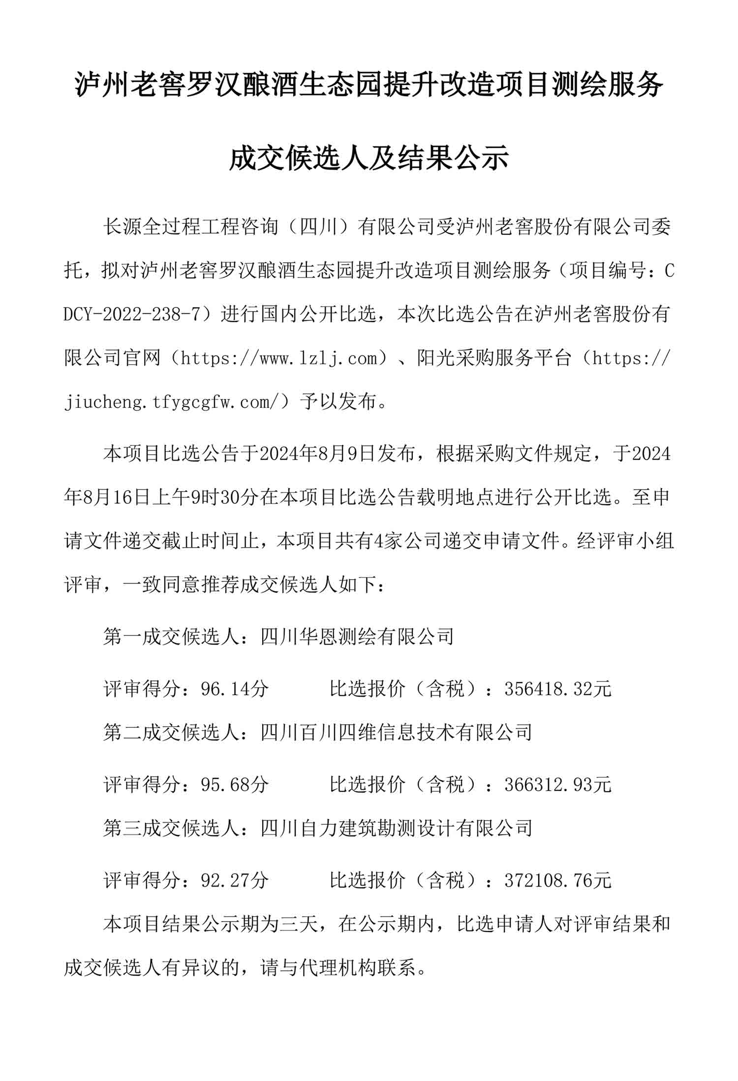 老司机 罗汉酿酒生态园提升改造项目测绘服务成交候选人及结果公示