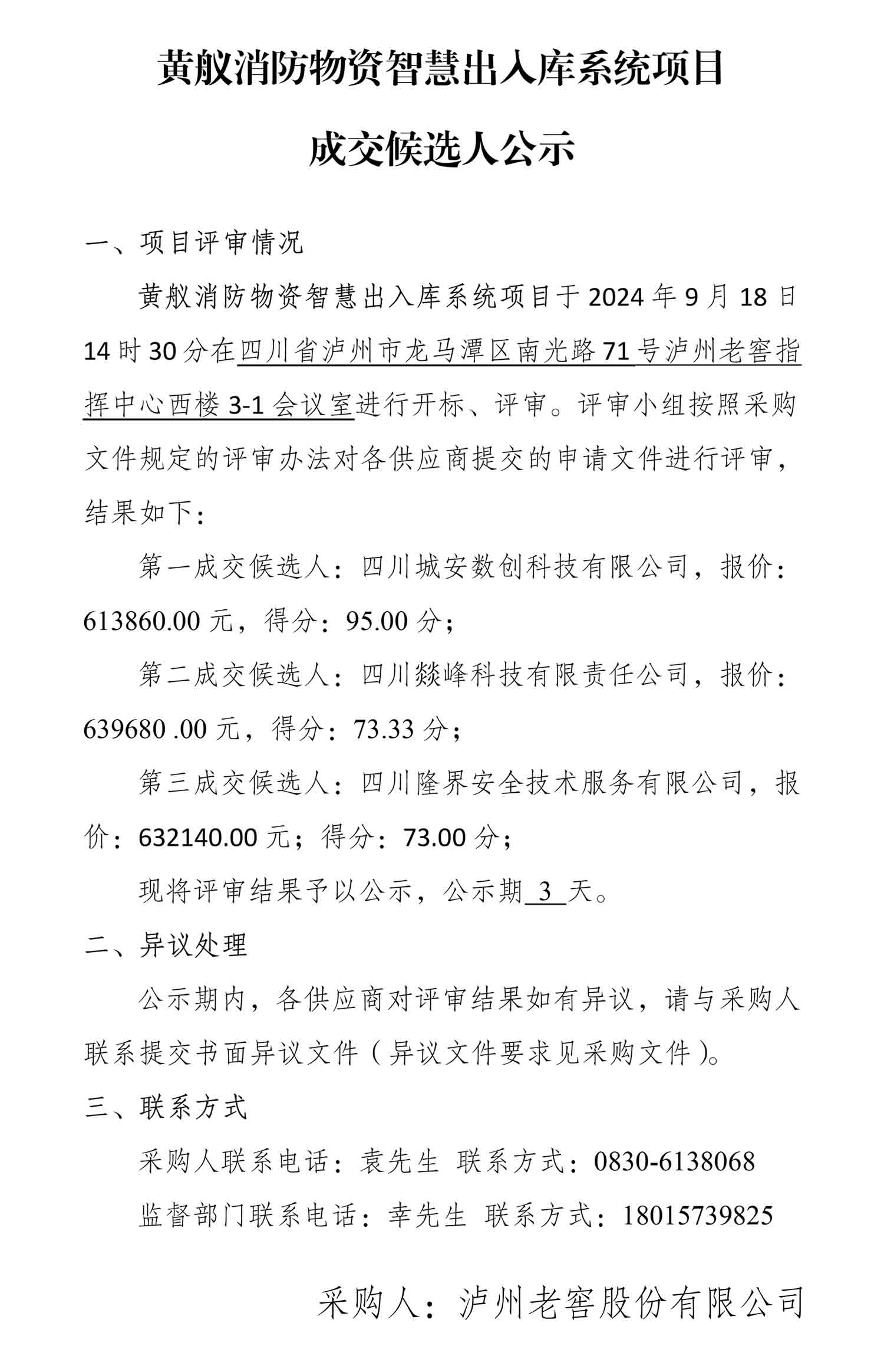 黄舣消防物资智慧出入库系统项目成交候选人公示