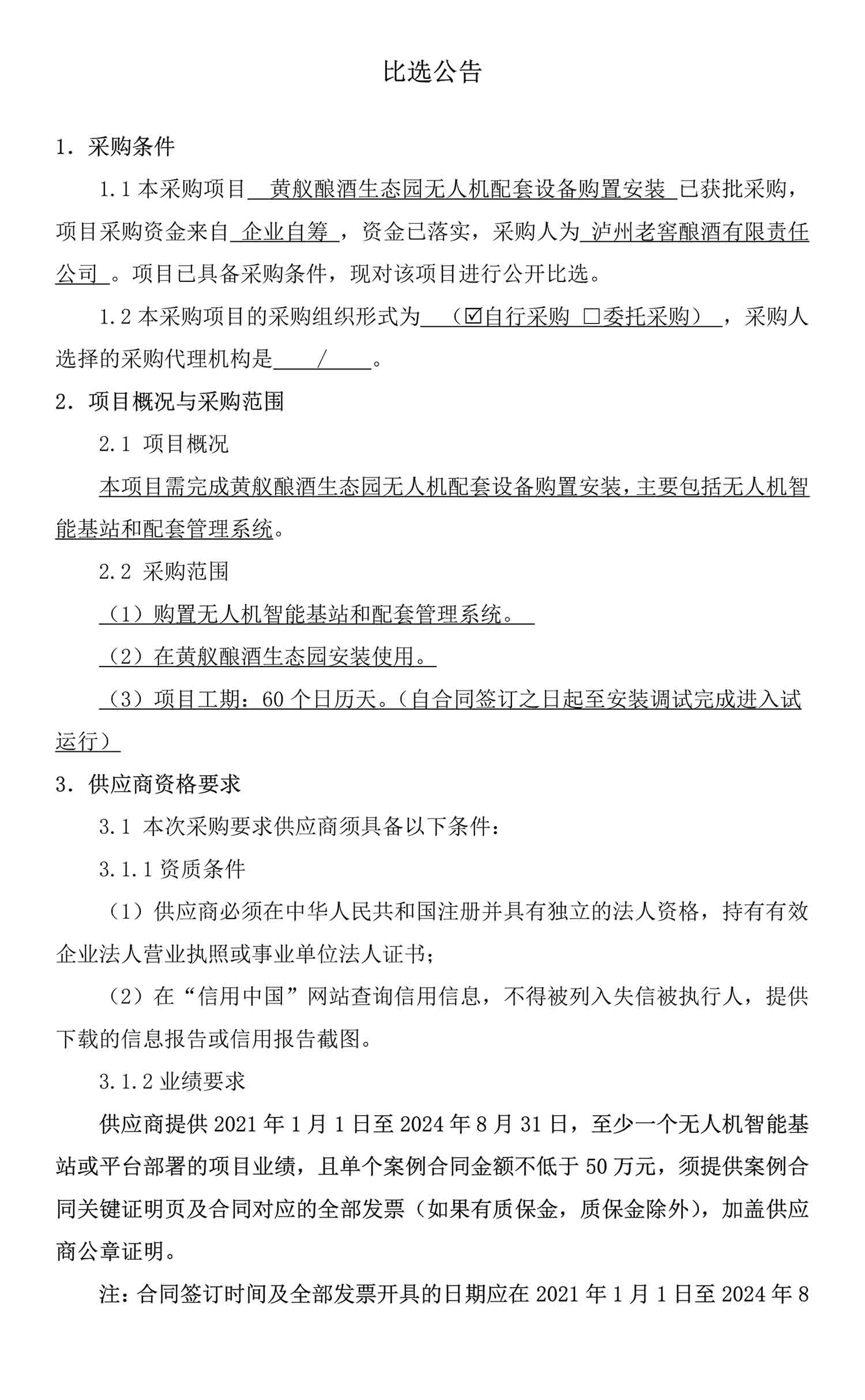 黄舣酿酒生态园无人机配套设备购置安装比选公告