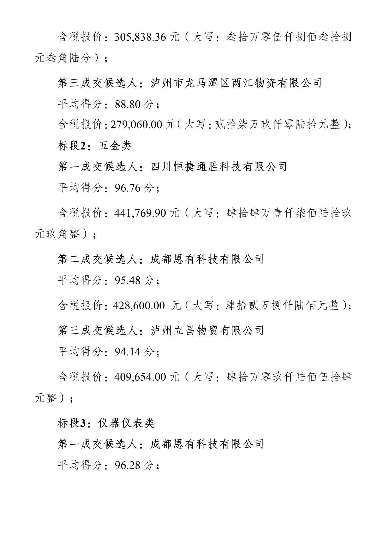 老司机 酿酒有限责任公司2024年9月备件采购项目成交候选人公示