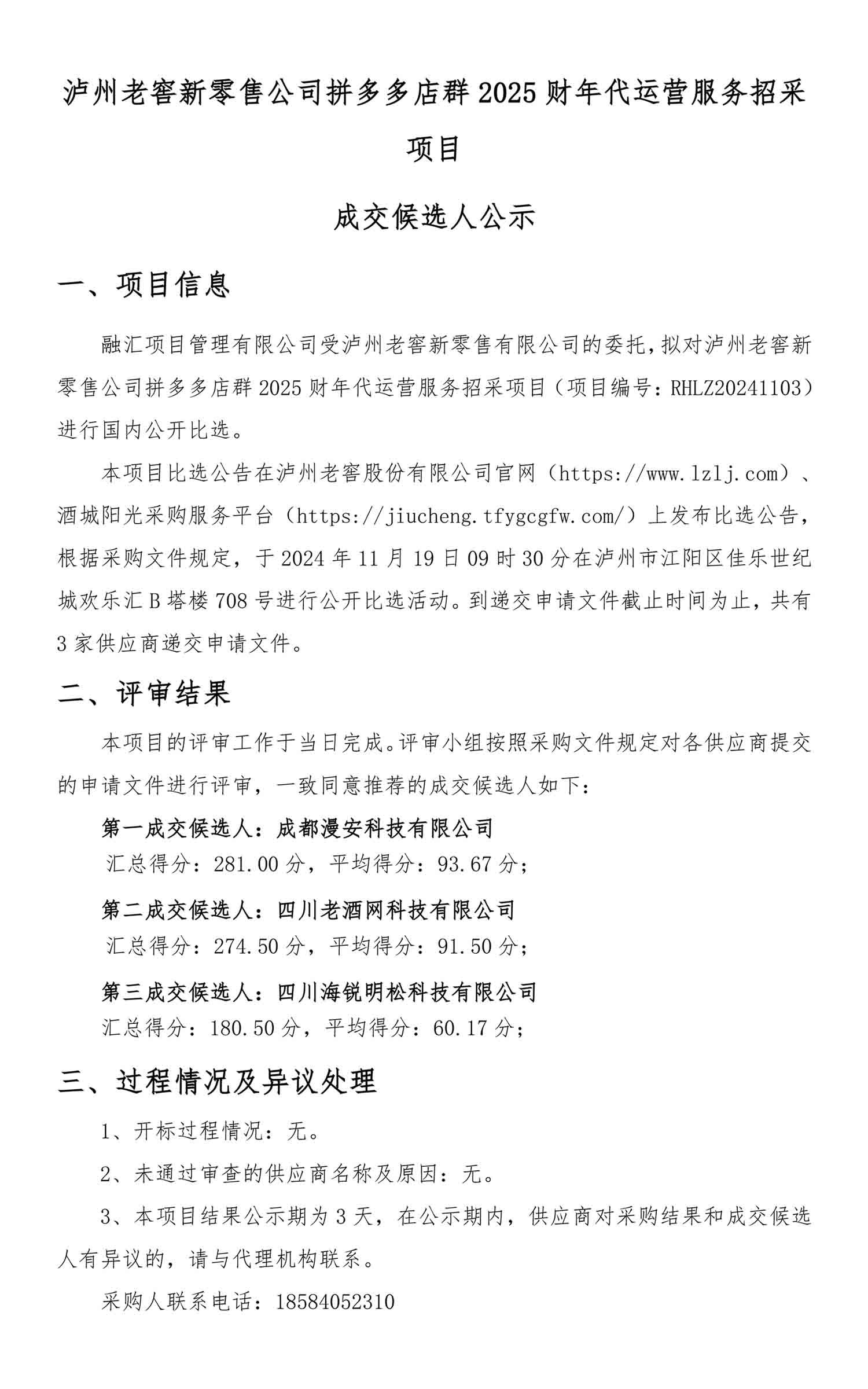 老司机 新零售公司拼多多店群2025财年代运营服务招采项目成交候选人公示