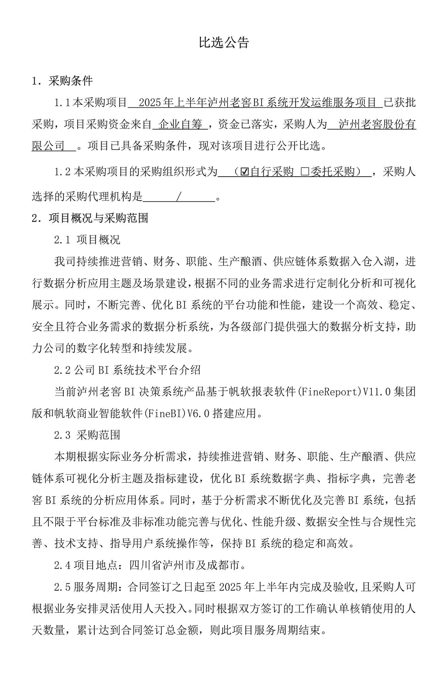 2025年上半年老司机 BI系统开发运维服务项目比选公告