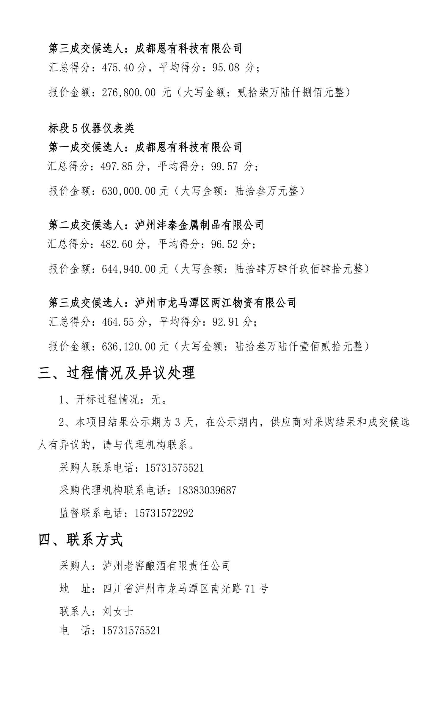 老司机 酿酒有限责任公司2024年11月备件采购成交候选人公示