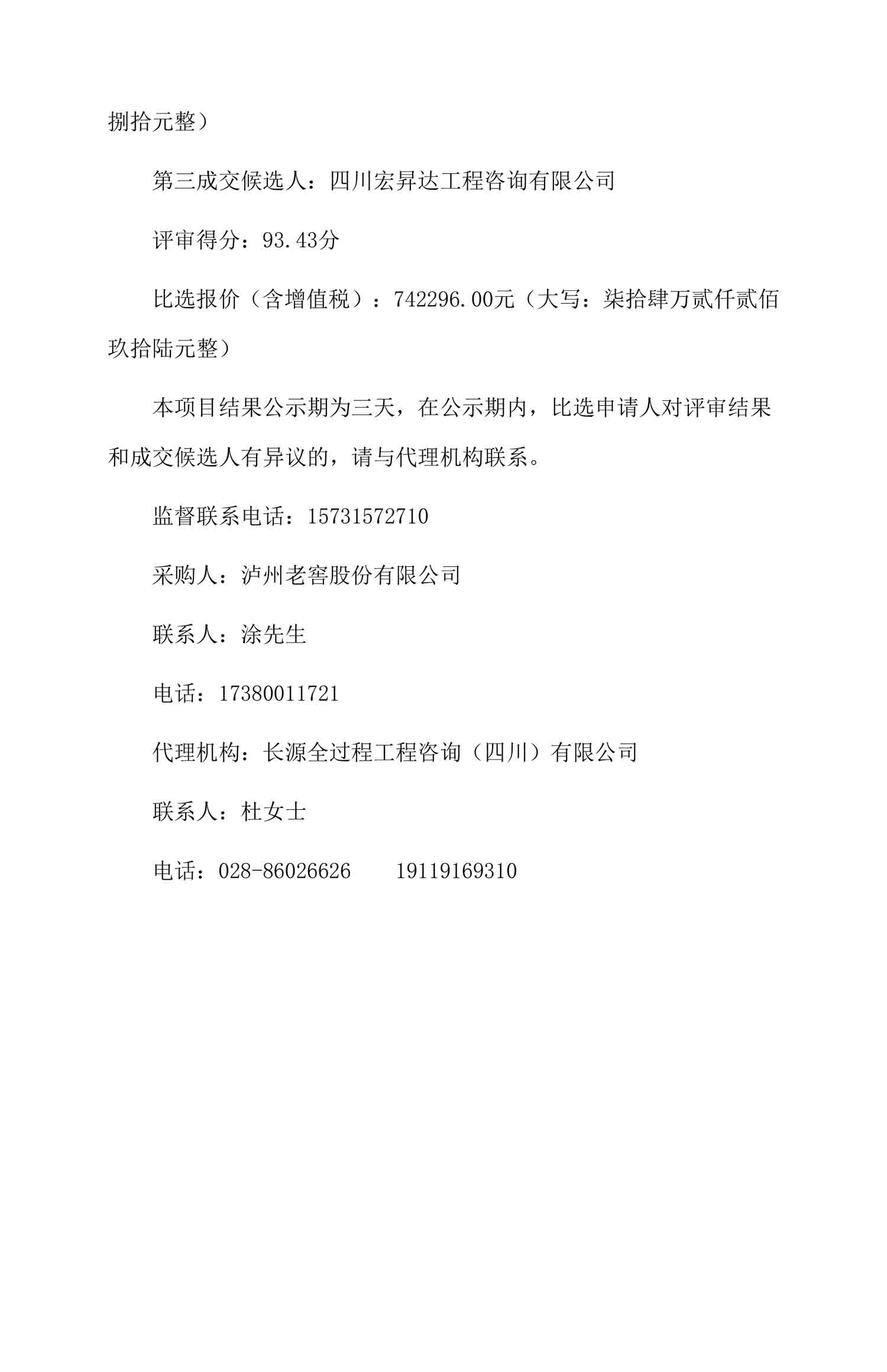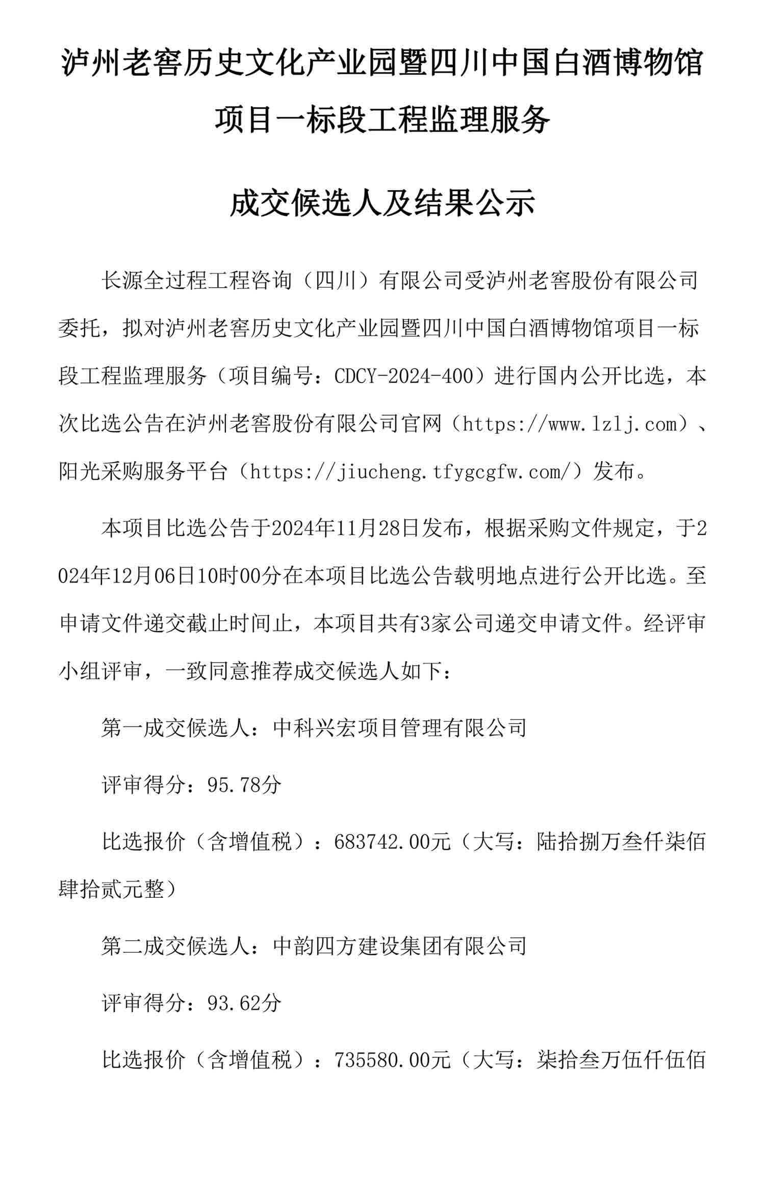 老司机 历史文化产业园暨四川中国白酒博物馆项目一标段工程监理服务成交候选人及结果公示