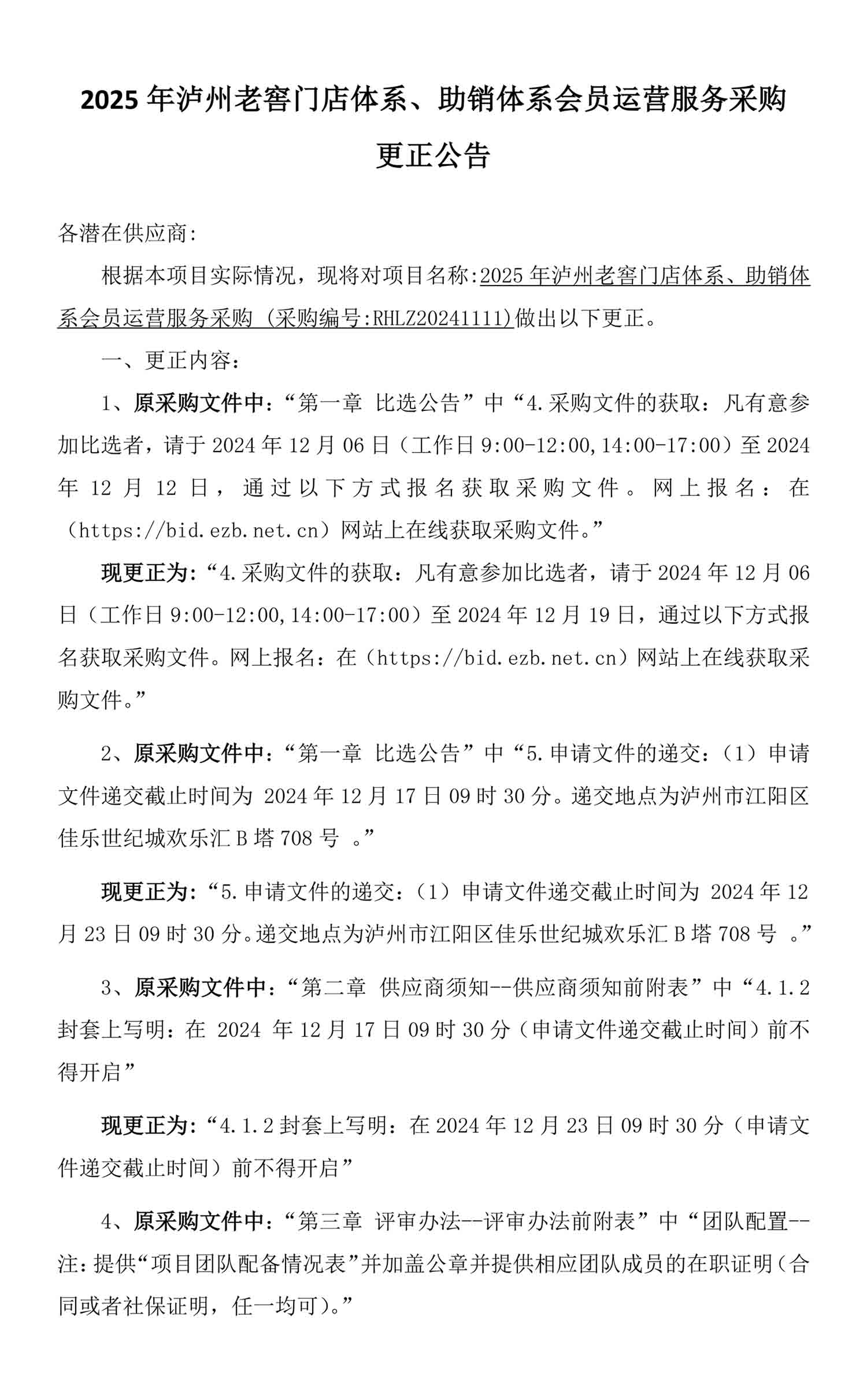 2025年老司机 门店体系、助销体系会员运营服务采购更正公告