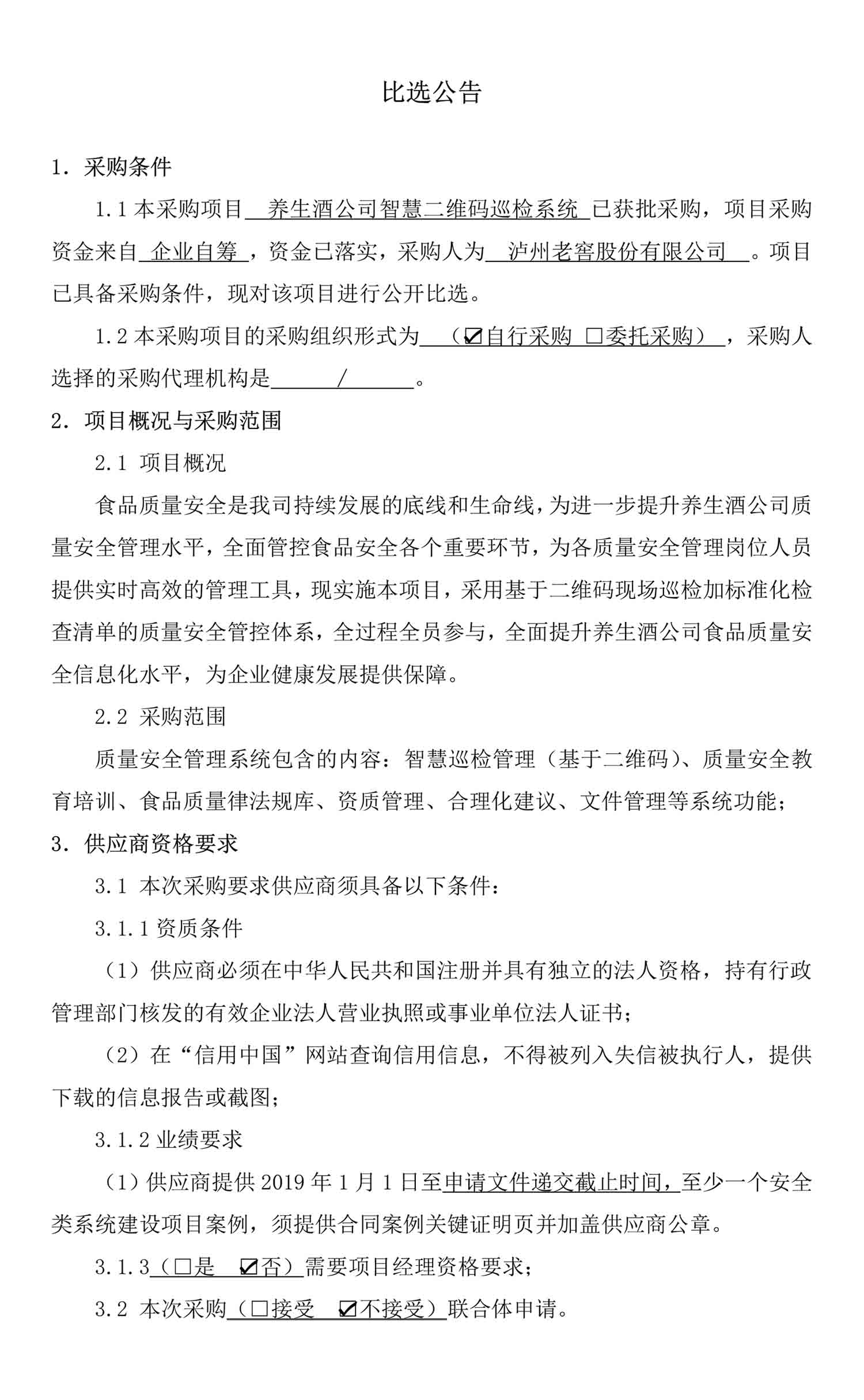 养生酒公司智慧二维码巡检系统比选公告