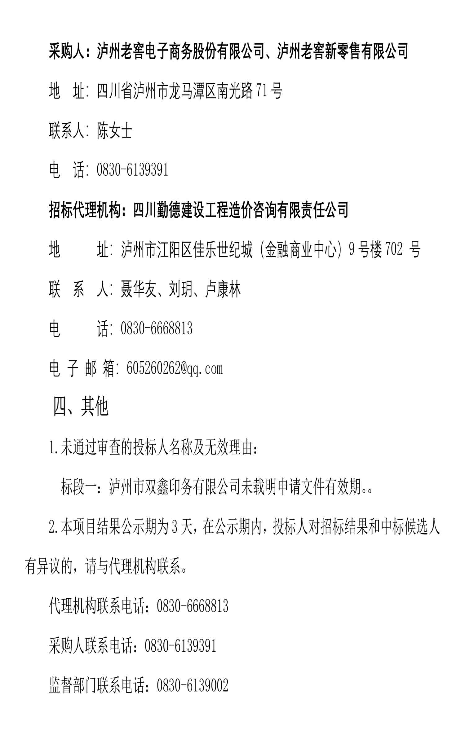 老司机 特曲晶彩时刻、老字号花开富贵礼盒及配套酒具采购中标候选人及结果公示