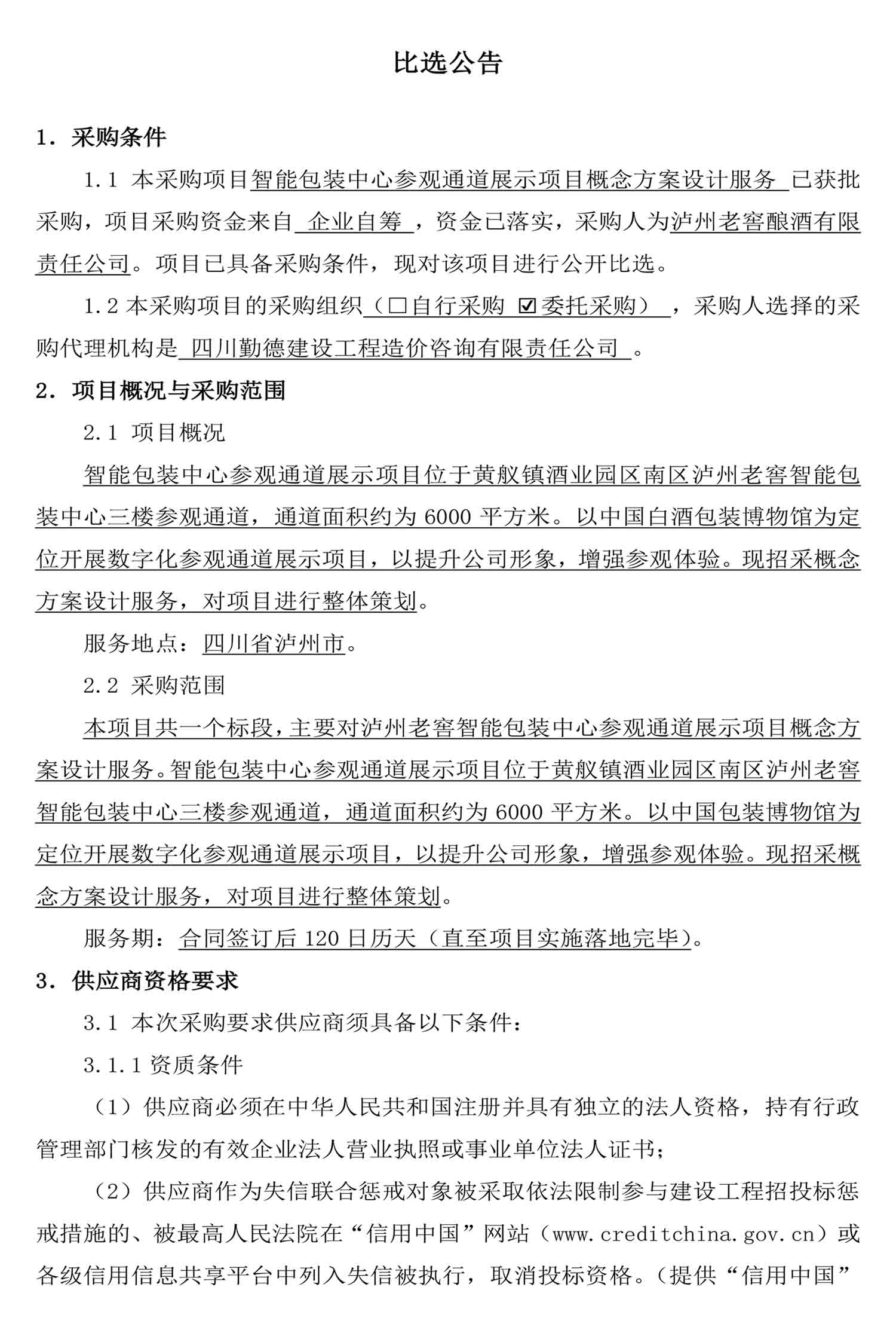 智能包装中心参观通道展示项目概念方案设计服务比选公告