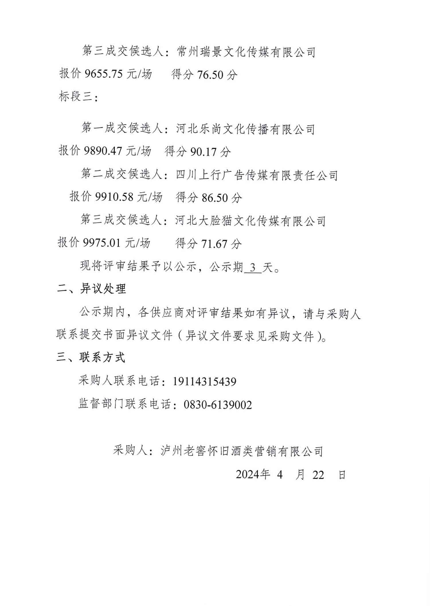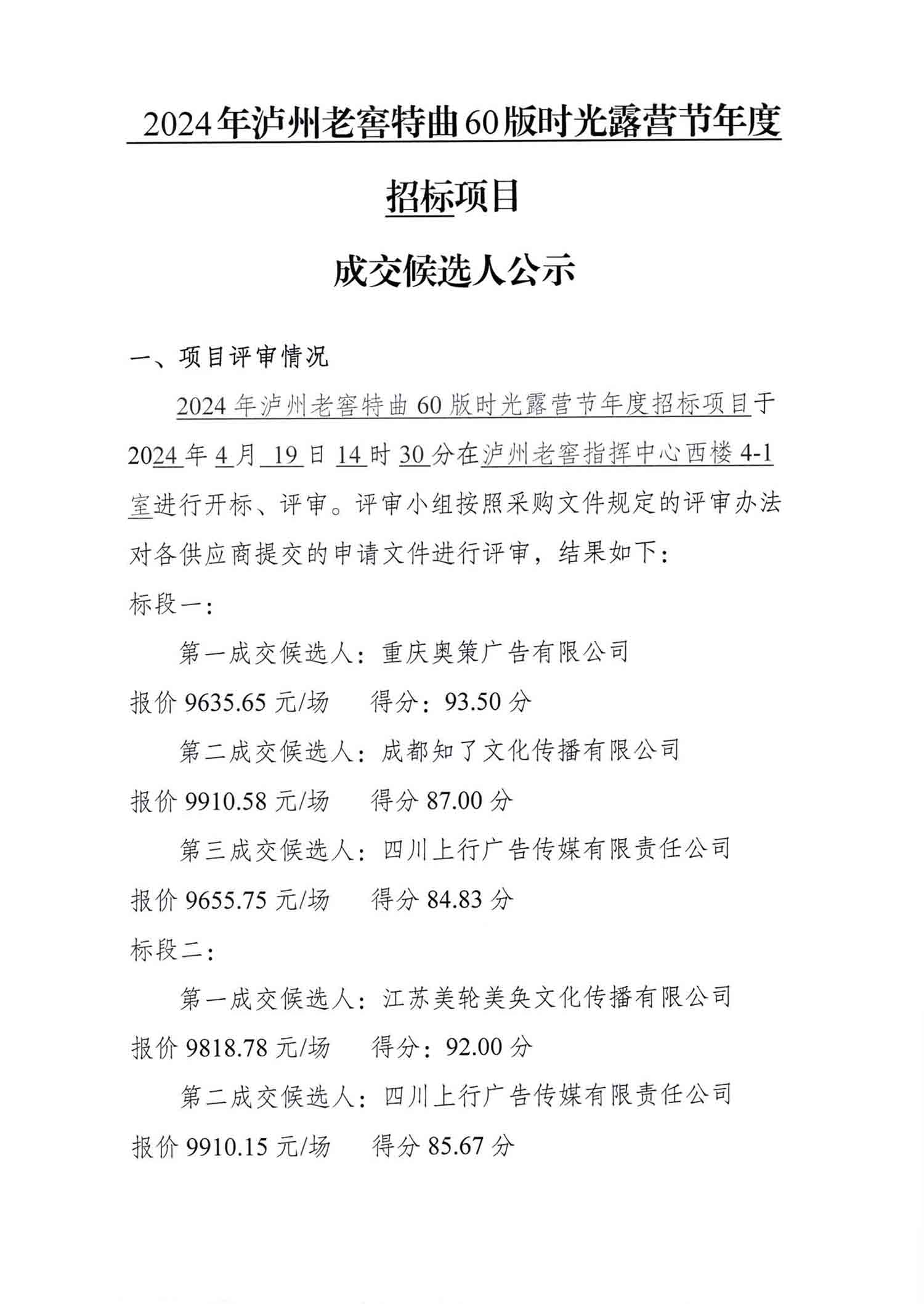 2024年老司机 特曲60版时光露营节年度招标项目成交候选人公示