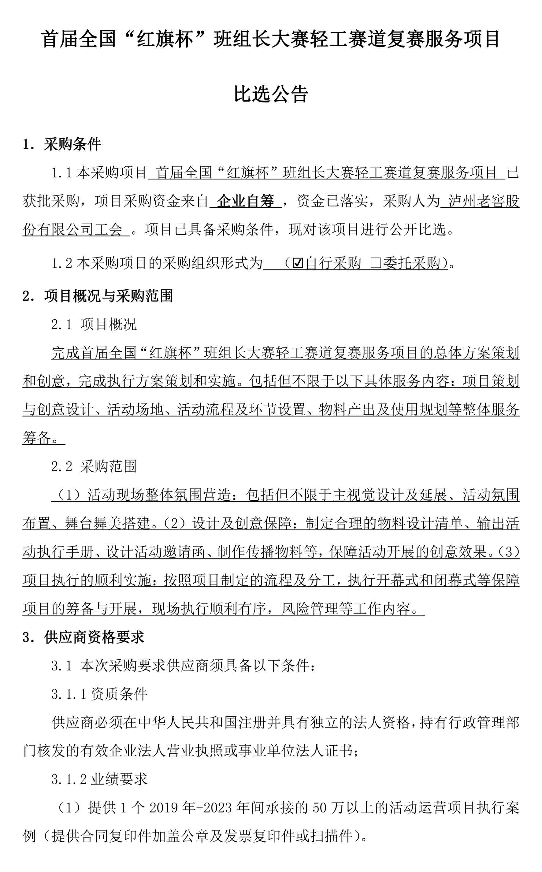 首届全国“红旗杯”班组长大赛轻工赛道复赛服务项目比选公告