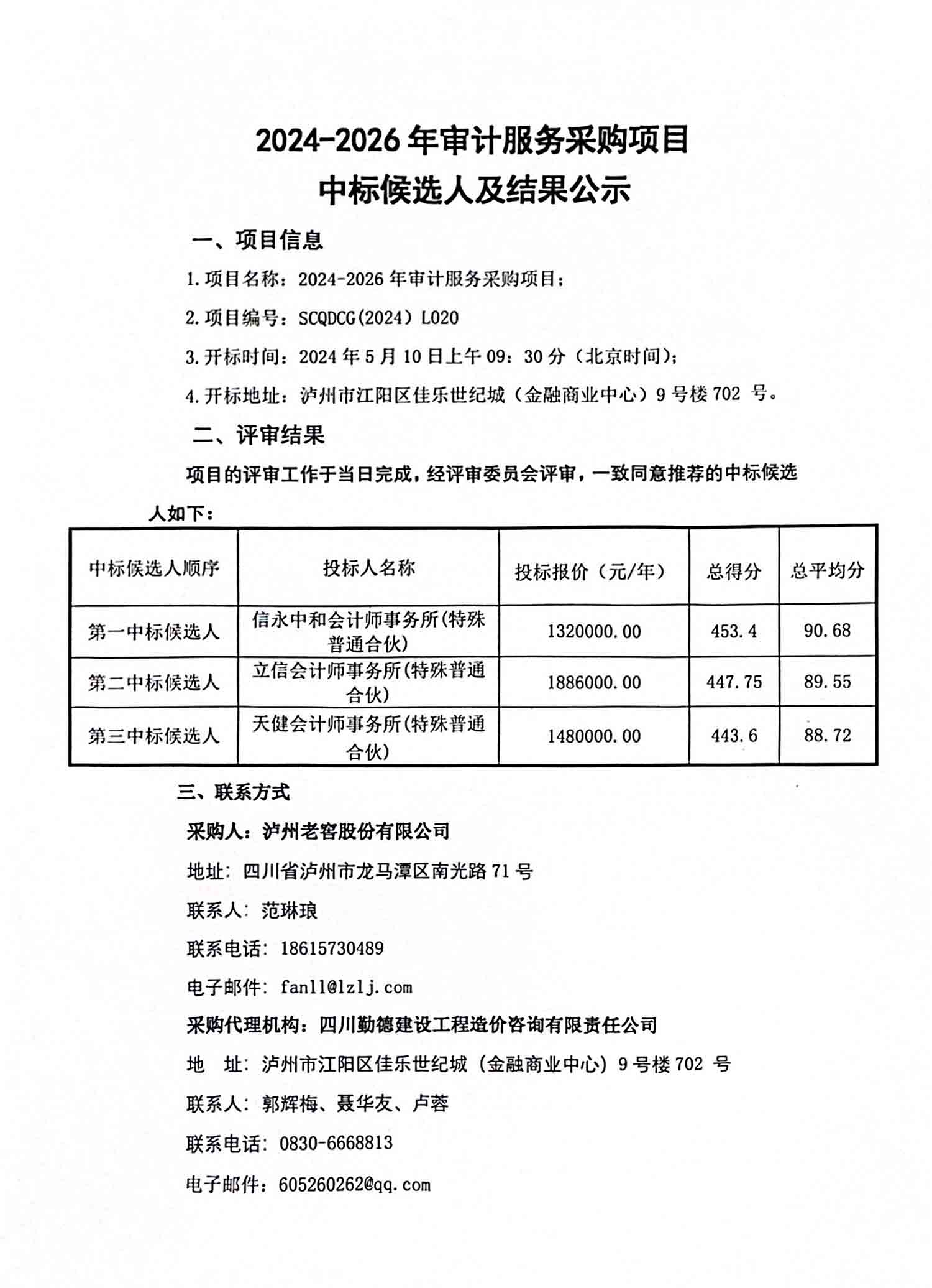 老司机 2024-2026年审计服务采购项目中标候选人及结果公示
