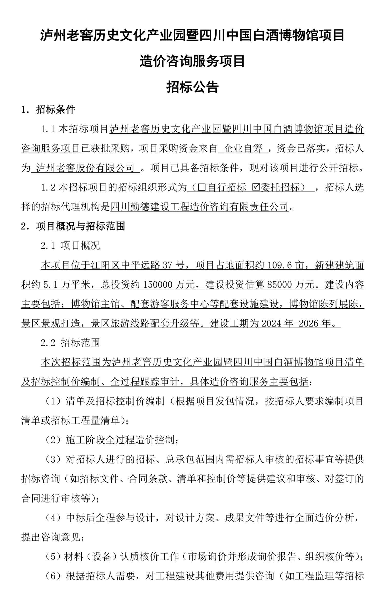 老司机 历史文化产业园暨四川中国白酒博物馆项目造价咨询服务项目招标公告