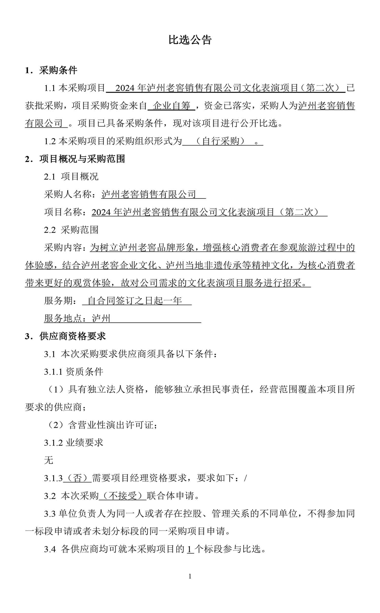 2024年老司机 销售有限公司文化表演项目(第二次)比选公告