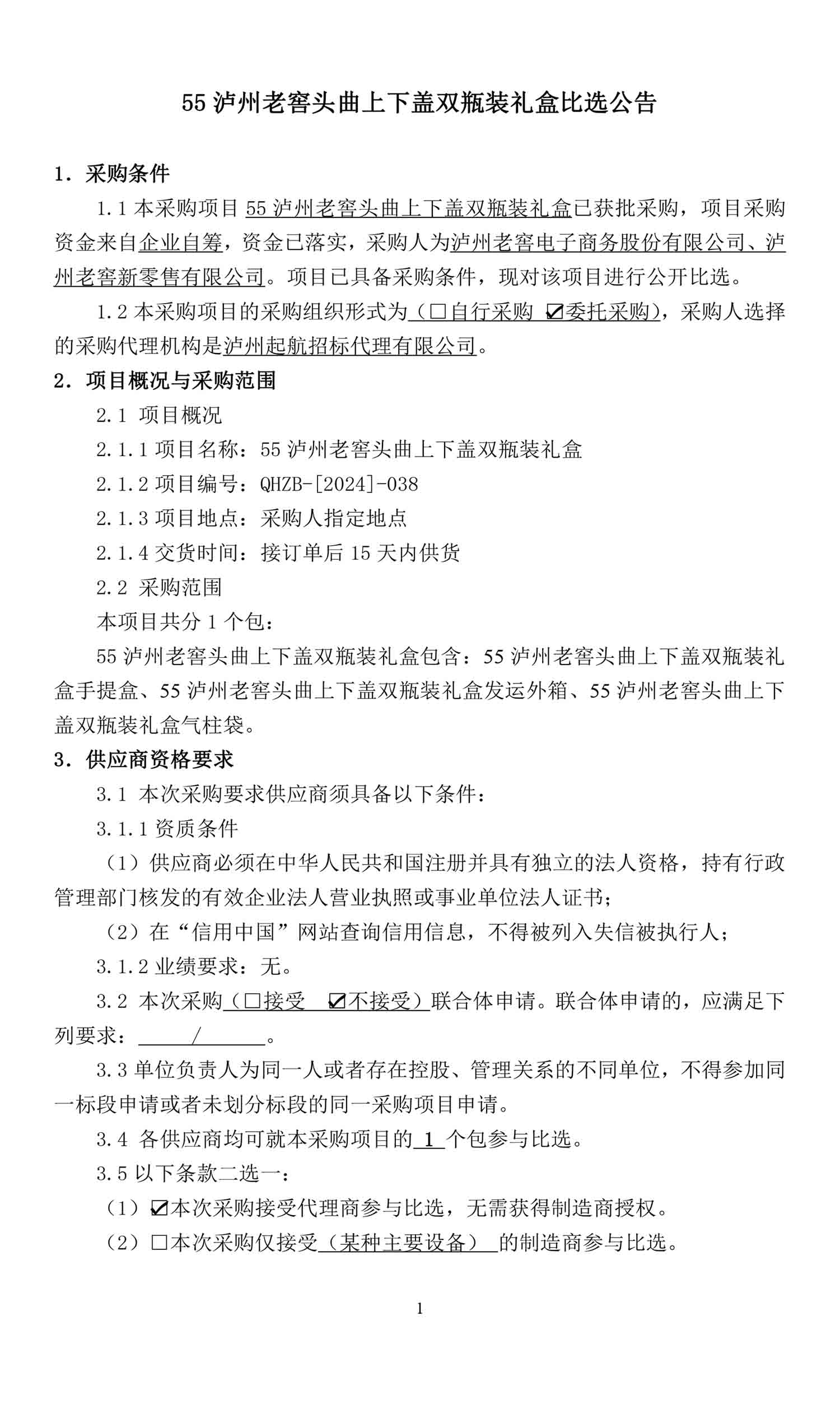 55老司机 头曲上下盖双瓶装礼盒比选公告
