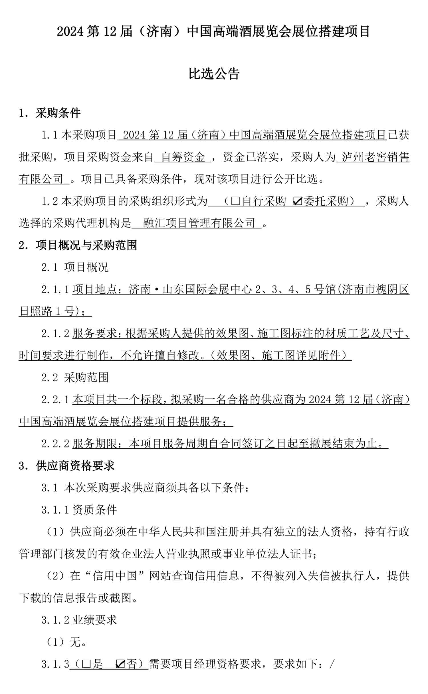 2024第12届(济南)中国高端酒展览会展位搭建项目比选公告