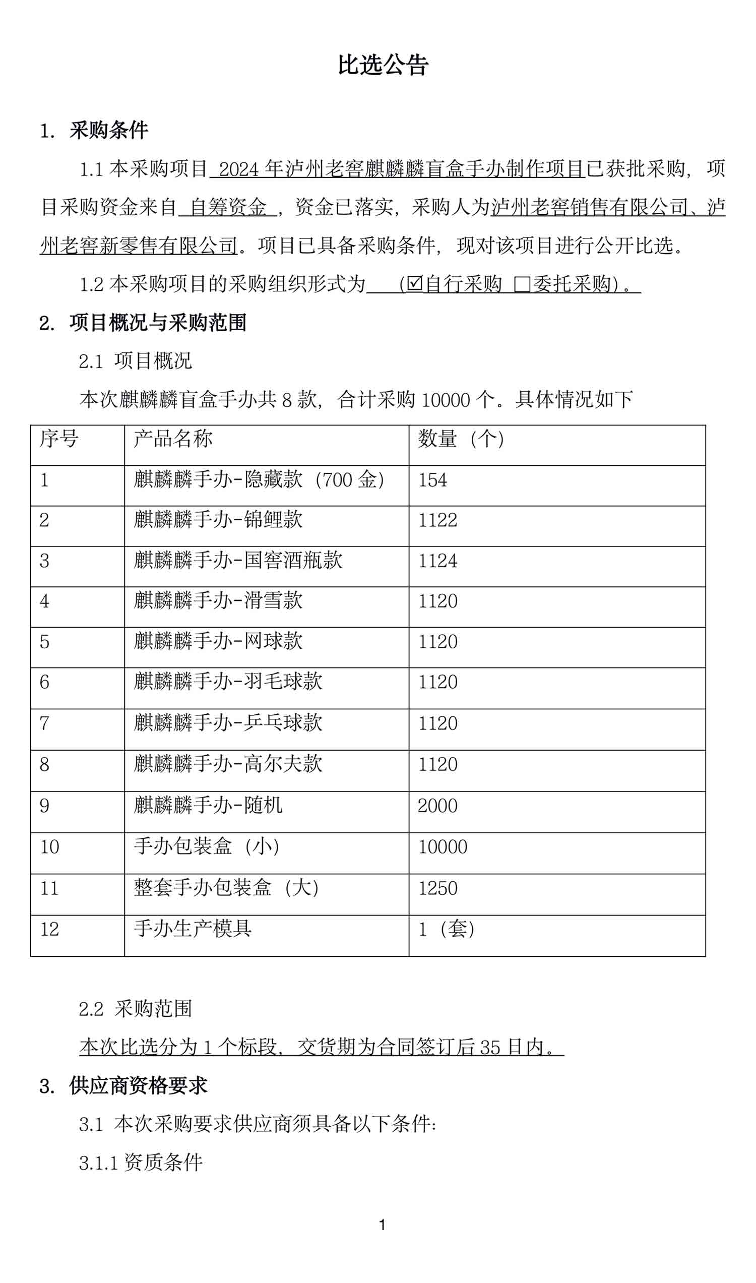 2024年老司机 麒麟麟盲盒手办制作项目比选公告