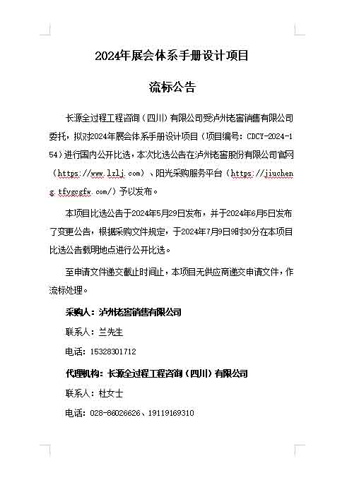 2024年展会体系手册设计项目流标公告
