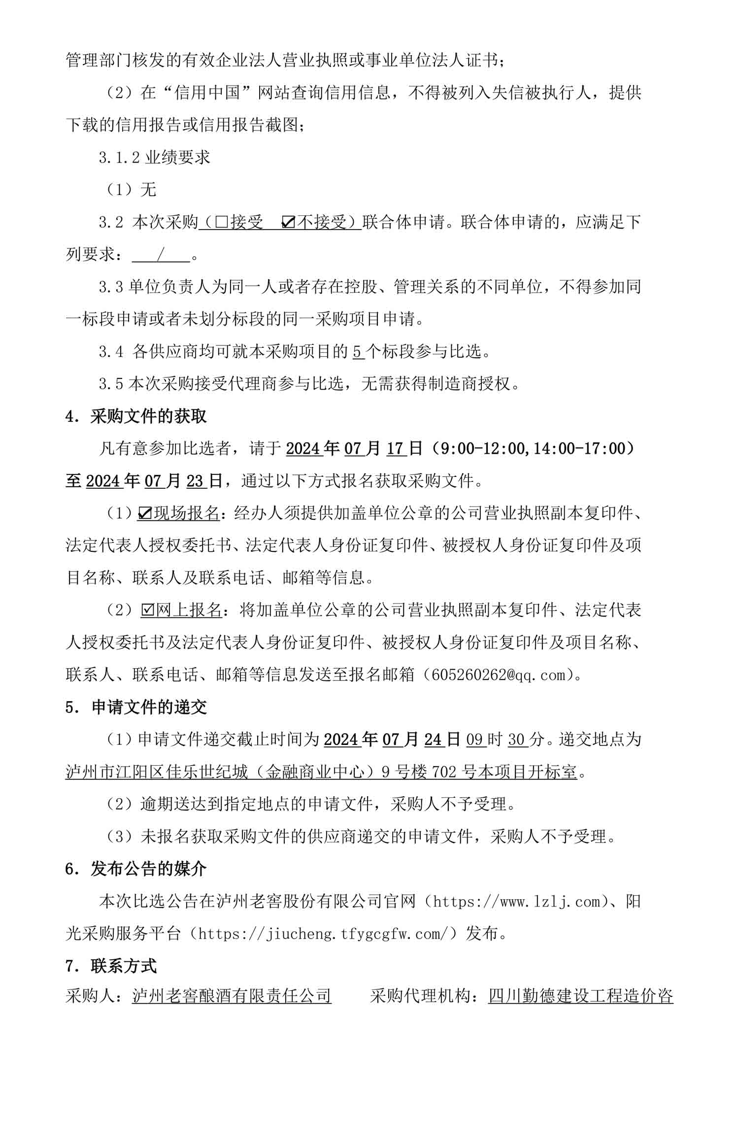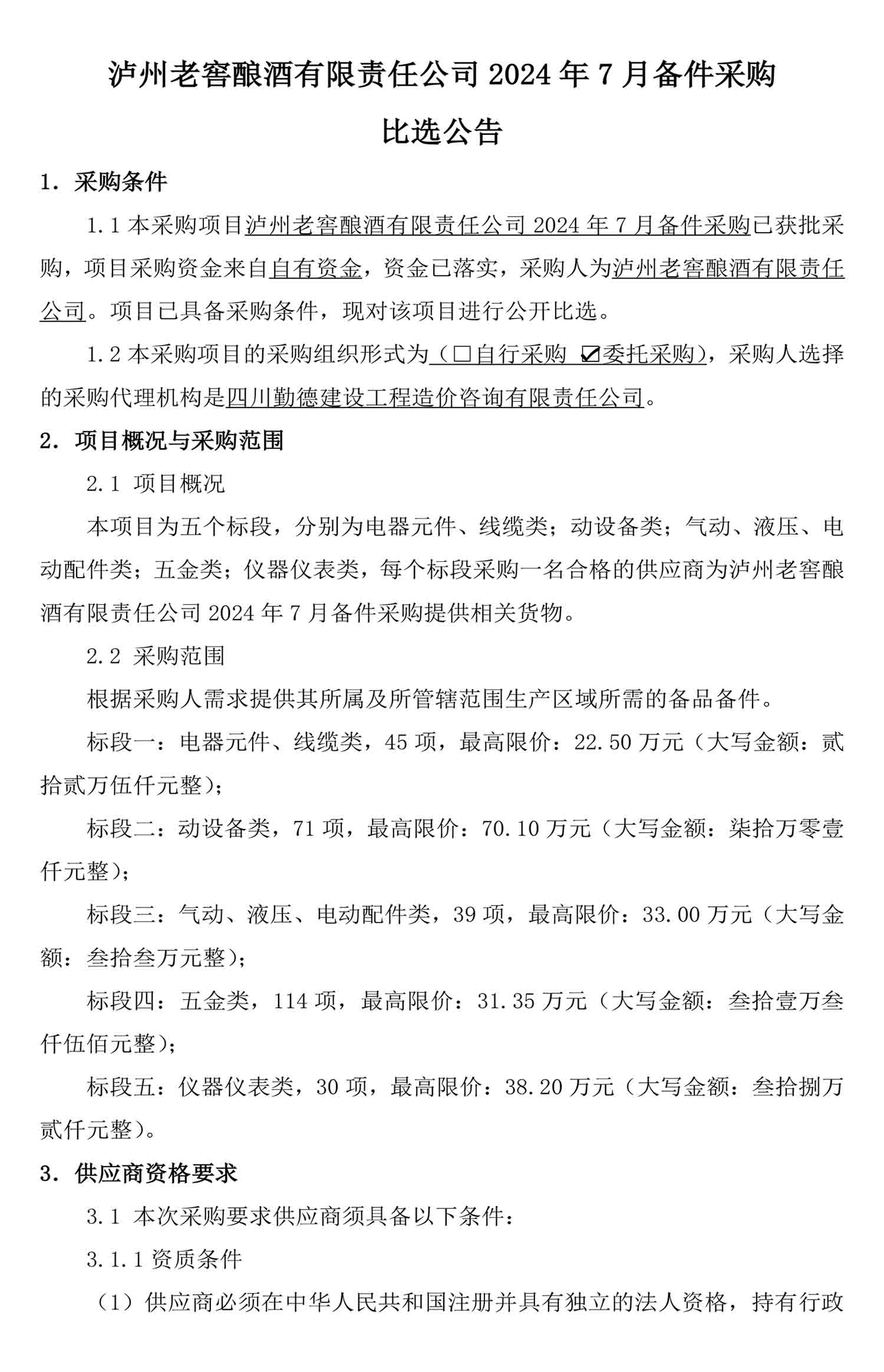 老司机 酿酒有限责任公司2024年7月备件采购比选公告