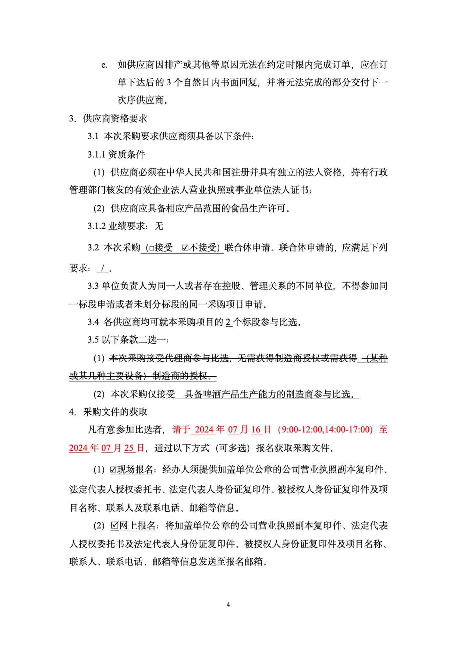 老司机 百调精酿啤酒980及小麦白啤成品采购项目比选公告