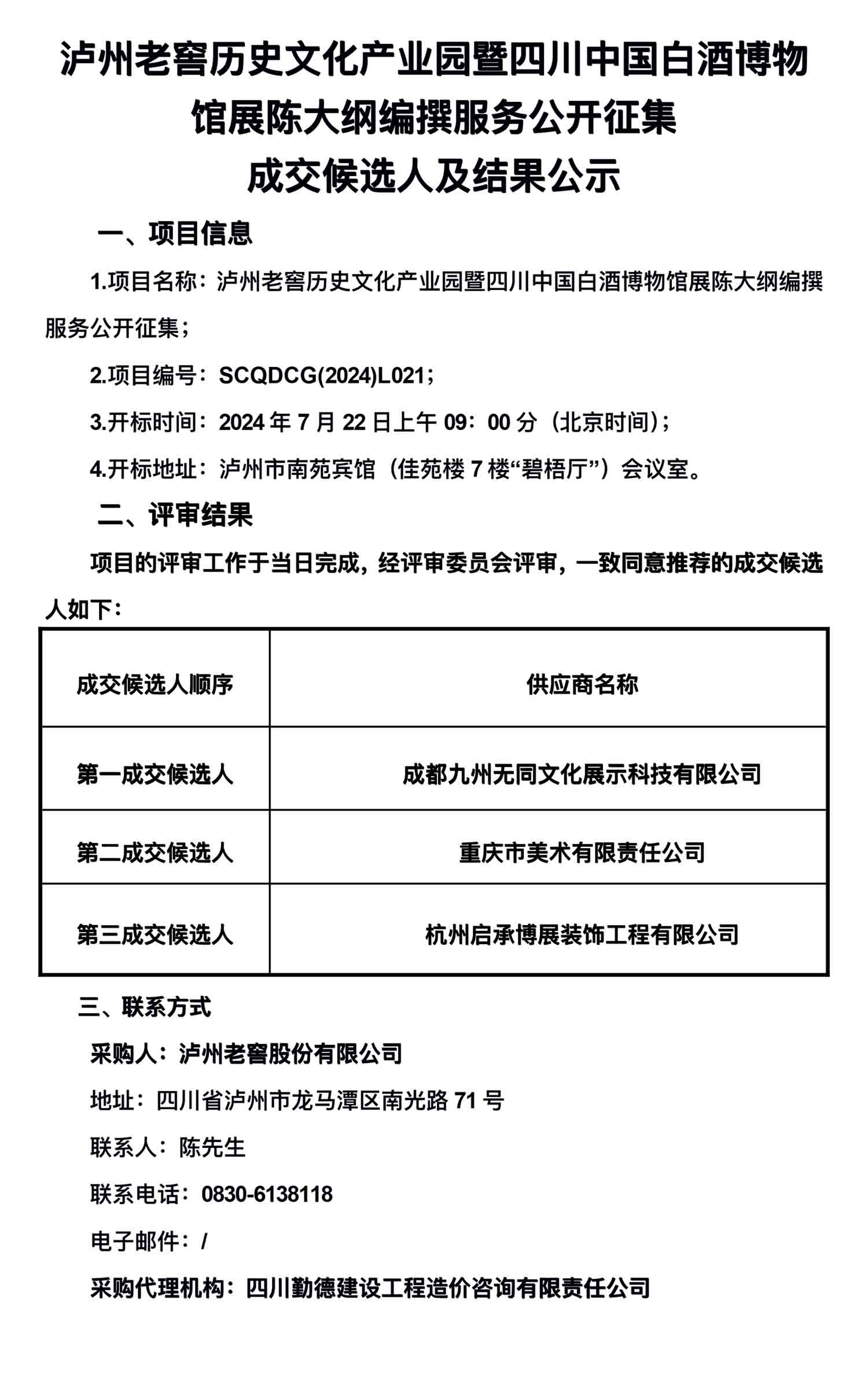 老司机 历史文化产业园暨四川中国白酒博物馆展陈大纲编撰服务公开征集成交候选人及结果公示
