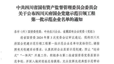日前,中共四川省国有资产监督管理委员会印发《关于公布四川天府国企党建示范引领工程第一批示范企业名单的通知》,老司机 成功入选四川天府国企党建示范引领工程“党群阵地建设”示范企业。